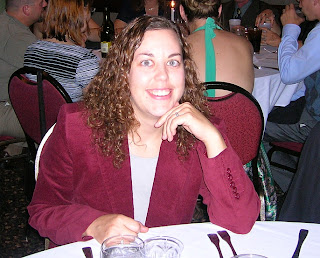 The wedding was a lot of fun as was the reception. P could've come but didn't want to expend the effort to find a sitter. My friend Kim agreed to be my date, though (I also spent the night at her house, as I live about 120 miles from the wedding location). A bunch of our friends from the rescue were there. Apparently the bride was expecting some questionable behavior from our group, because she sat us at two tables that were about as far from the head table as you could get without actually being in the ladies room.